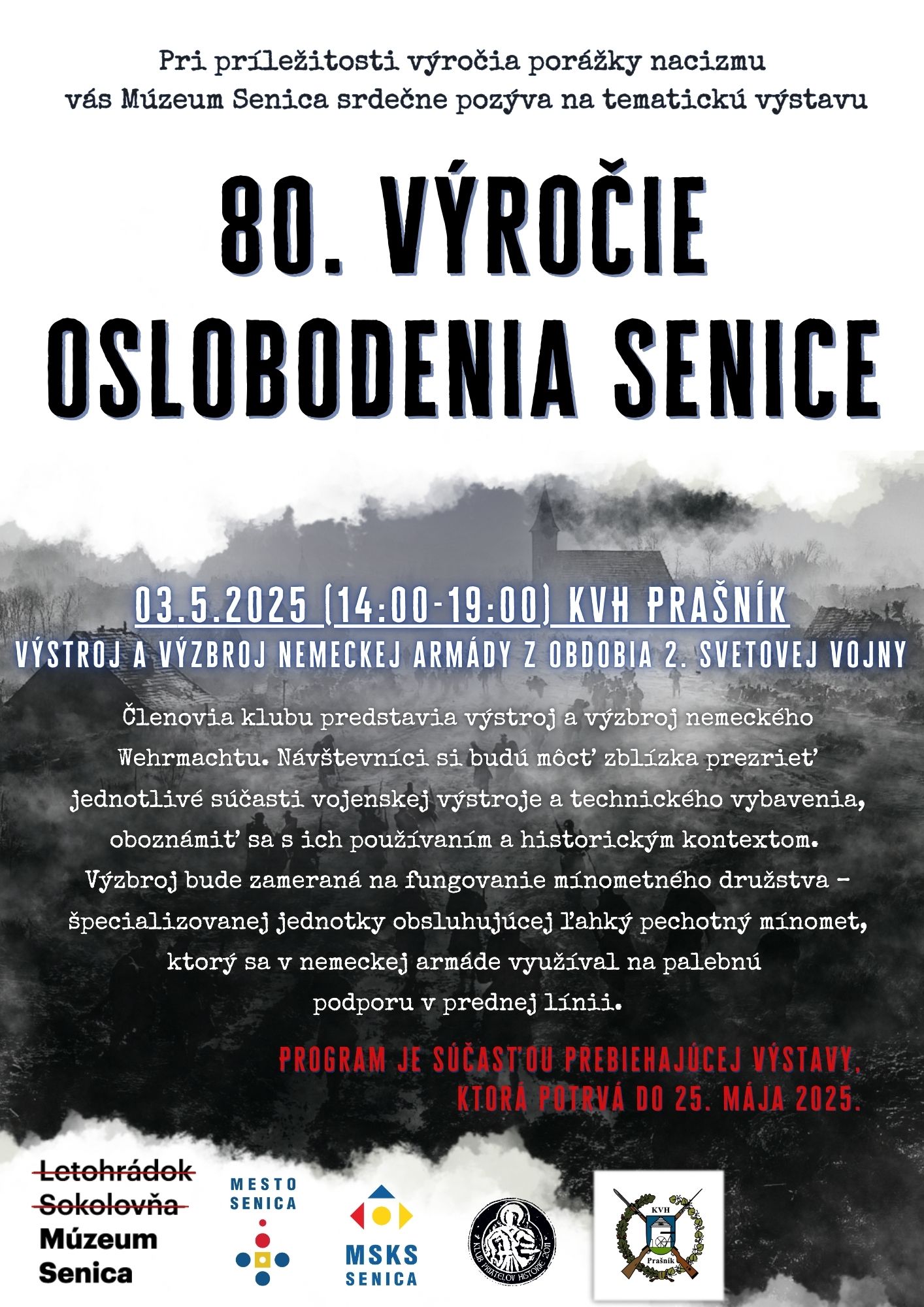 Múzeum Senica od 3. apríla do 25. mája 2025 pripravilo rozsiahlu výstavu venovanú 80. výročiu oslobodenia mesta. Návštevníci mali možnosť oboznámiť sa s historickými udalosťami z konca druhej svetovej vojny – od bitky o Senicu, bojového stretu s partizánmi v osade u Rehúšov, tragédie v Surovinskom lese, až po archeologické nálezy z obdobia vojny, spomienky pamätníka Milana Benžu a činnosť miestneho odboja spolu s osobnosťami, ktoré zohrali úlohu v Senici a jej okolí.