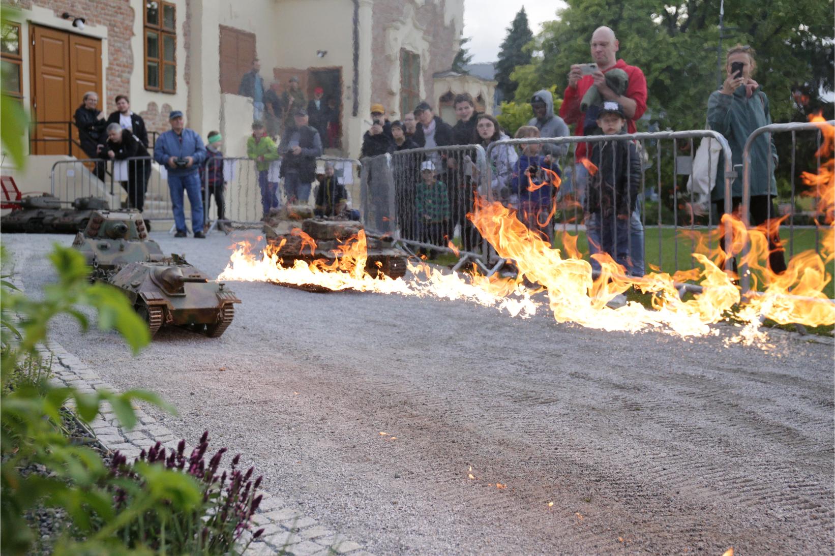 Najväčším lákadlom večera bola realistická modelová rekonštrukcia bojov z druhej svetovej vojny. V akcii si návštevníci pozreli plne funkčné tanky v mierke 1:6 so efektmi, doplnené odborným komentárom.