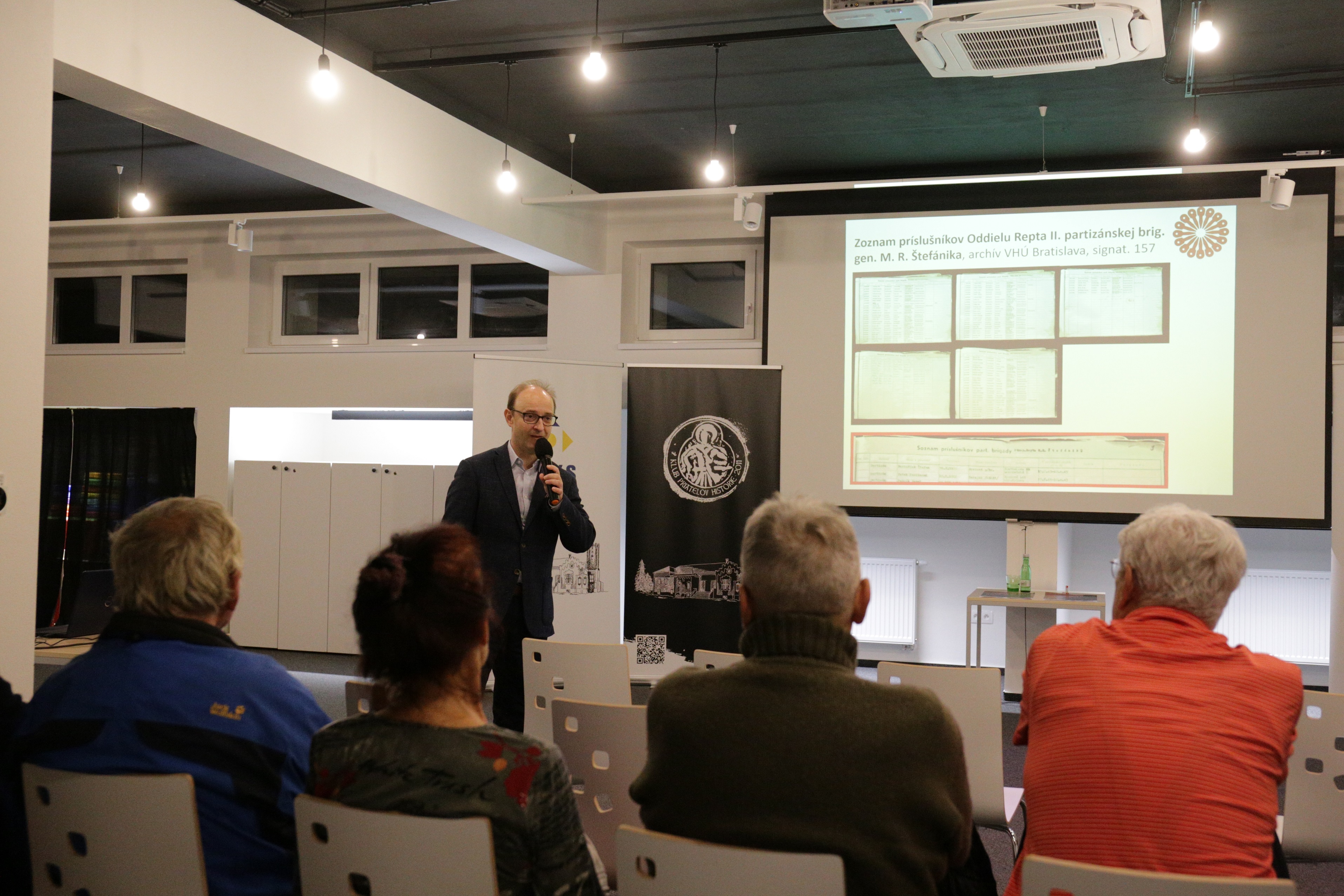 Prednáška sa konala v Hornej sále DAV-u a prilákala návštevníkov, ktorí sa zaujímajú o regionálne dejiny i vojnovú históriu. Počas podujatia PhDr. Matúš Valihora predstavil Reptov život, partizánske aktivity a širší historický kontext v rámci II. brigády M. R. Štefánika.